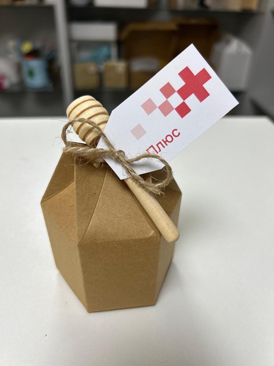 Идеальный подарок или сувенир – брендированный мед в стильной упаковке (коробочка + бирка).
