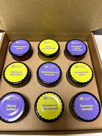 • Брендирование каждой баночки с индивидуальным пожеланием