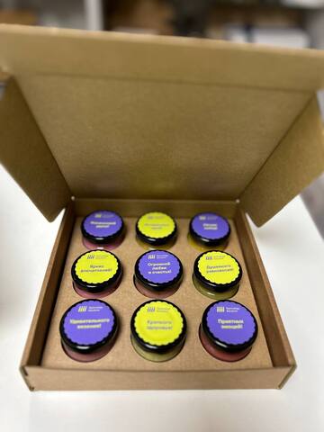 • Девять баночек медового суфле по 35 грамм с разнообразными вкусами. Каждая баночка - это отдельное пожелание