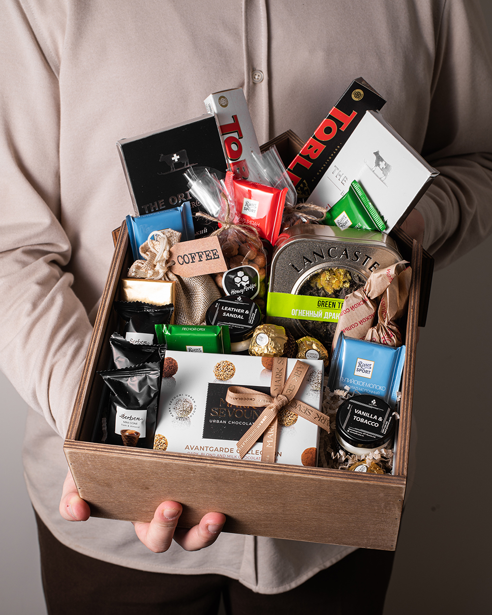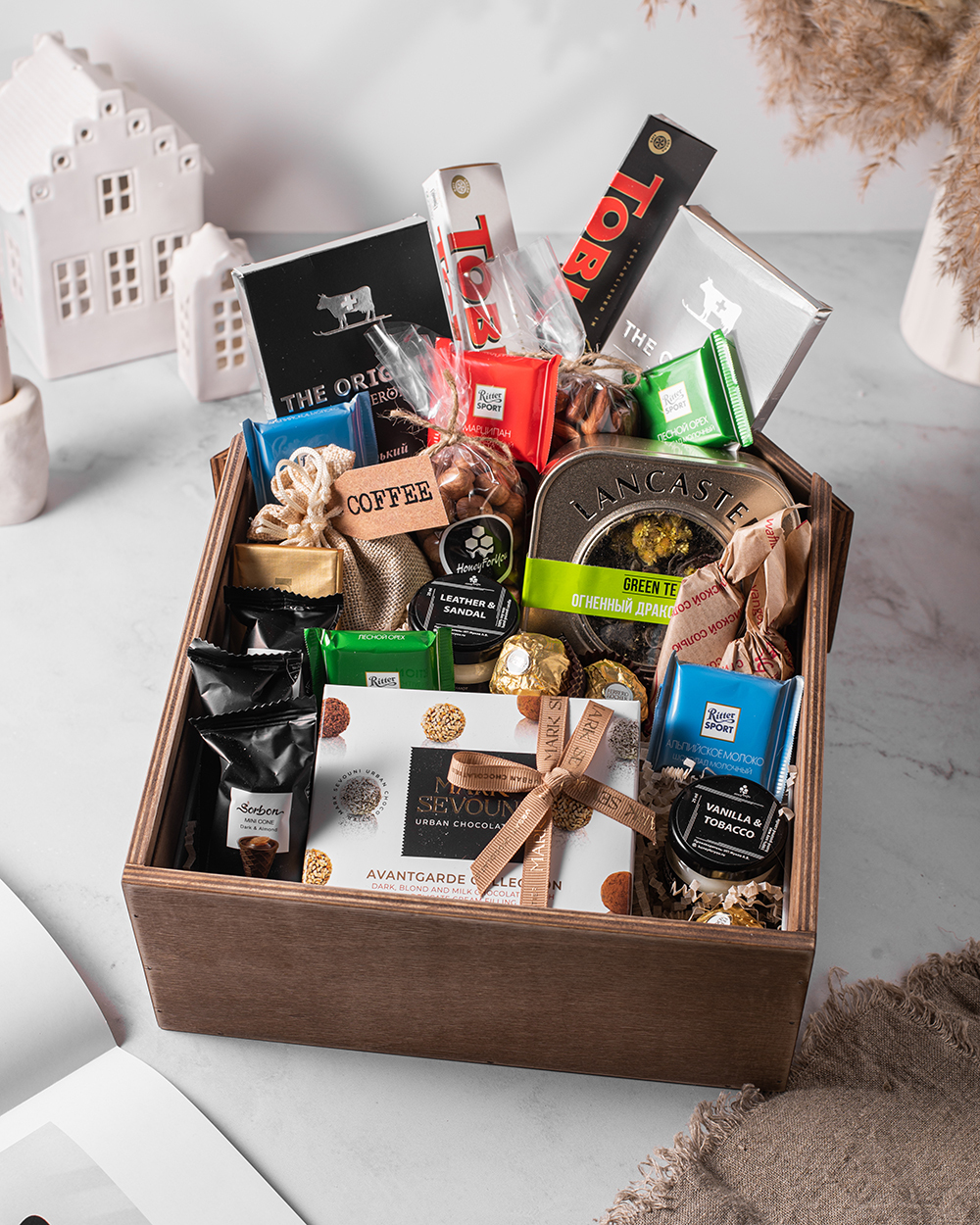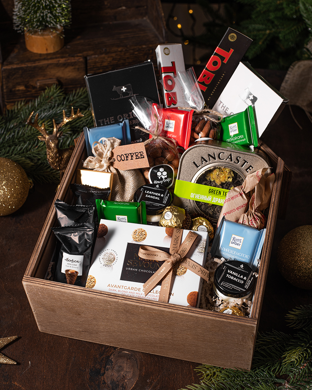 Представьте маленький волшебный домик, наполненный ароматами праздника и вкусами далёких стран. Именно таким получился наш премиальный подарочный набор — изысканное сочетание импортных сладостей и утончённых ароматов в авторском деревянном ящике ручной работы.
